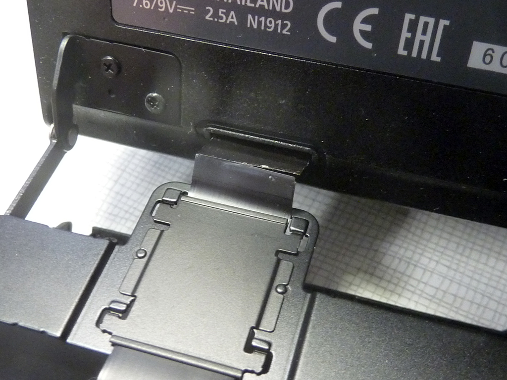 A force de manipuler l'écran inclinable, il arrive que le circuit de liaison allant du lcd à la carte principale se coupe (voir photo).
