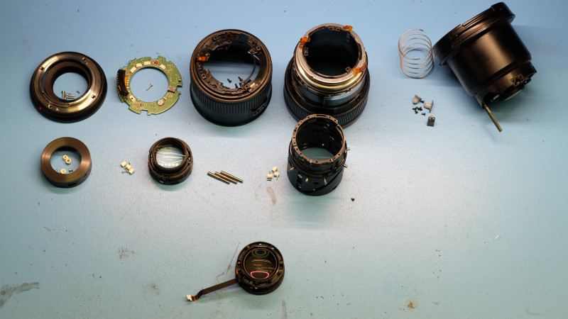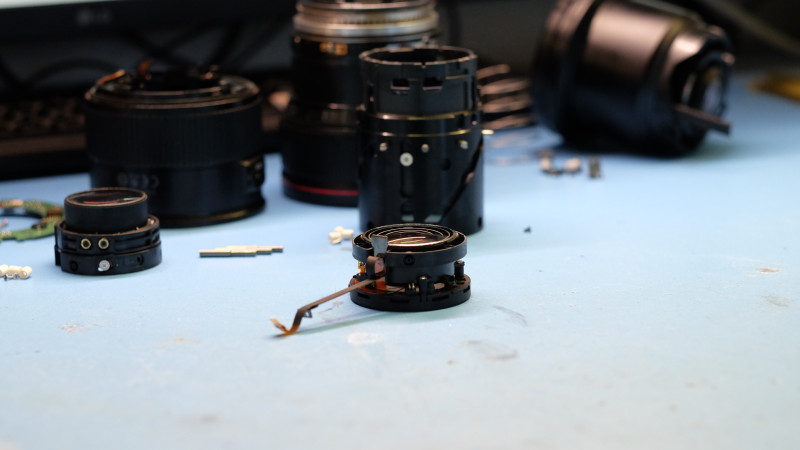 Dans la majorité des cas, nous procédons au remplacement du bloc diaphragme complet (ensemble nappe + moteur pas à pas + lames). Cette opération implique un démontage poussé de l'objectif et se termine par un centrage optique de l'ensemble des groupes de lentilles sur banc de réglage, afin de garantir la qualité d'image d'origine.