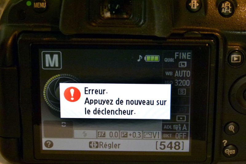 Le message « Err » clignote sur l'écran LCD supérieur de votre reflex Nikon et l'appareil se bloque ? Ce code d'erreur générique signale un dysfonctionnement interne qui empêche le boîtier de terminer son cycle de prise de vue. L'erreur Err peut apparaître sur pratiquement tous les reflex Nikon, du D3100 au D810, et recouvre plusieurs pannes distinctes. Éteindre et rallumer l'appareil peut temporairement résoudre le problème, mais si l'erreur revient régulièrement, une pièce mécanique est en fin de vie et une intervention en atelier est nécessaire.