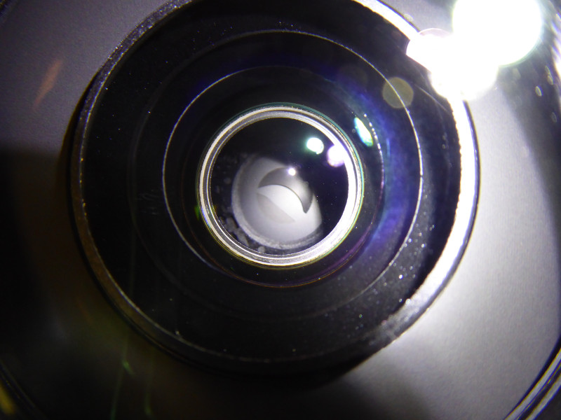Allumez l'appareil et regardez à travers la lentille frontale. Si vous voyez les lamelles fermées (comme un iris d'objectif en position minimum), l'obturateur est bloqué et nécessite une réparation.