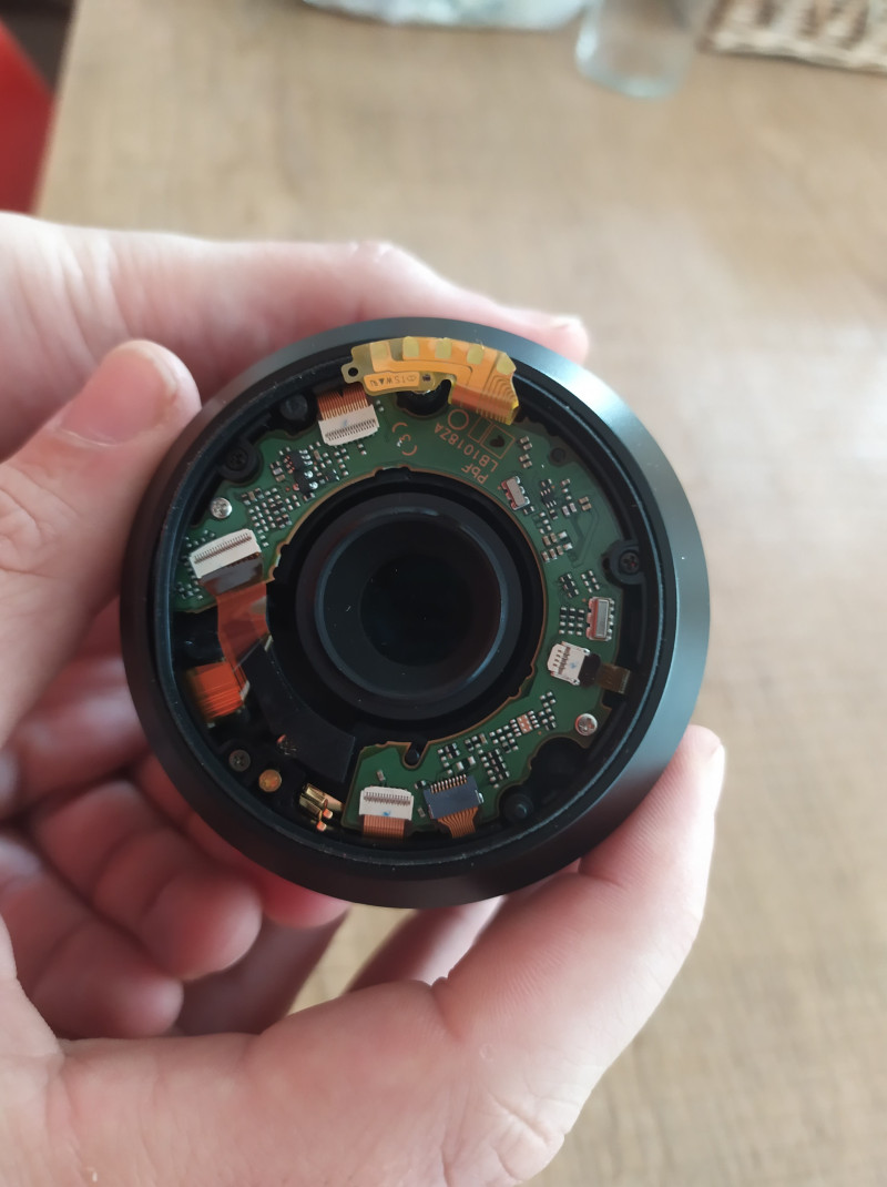 Si seule la bague métallique est cassée et que les pattes internes sont intactes, le remplacement est mécaniquement simple (4 à 6 vis). Mais attention : la nappe flex est fragile et un mauvais remontage peut provoquer un décentrement optique invisible à l'œil nu. Sans contrôle de centrage après intervention, vous risquez de récupérer un objectif qui semble fonctionner mais produit des images de qualité dégradée.